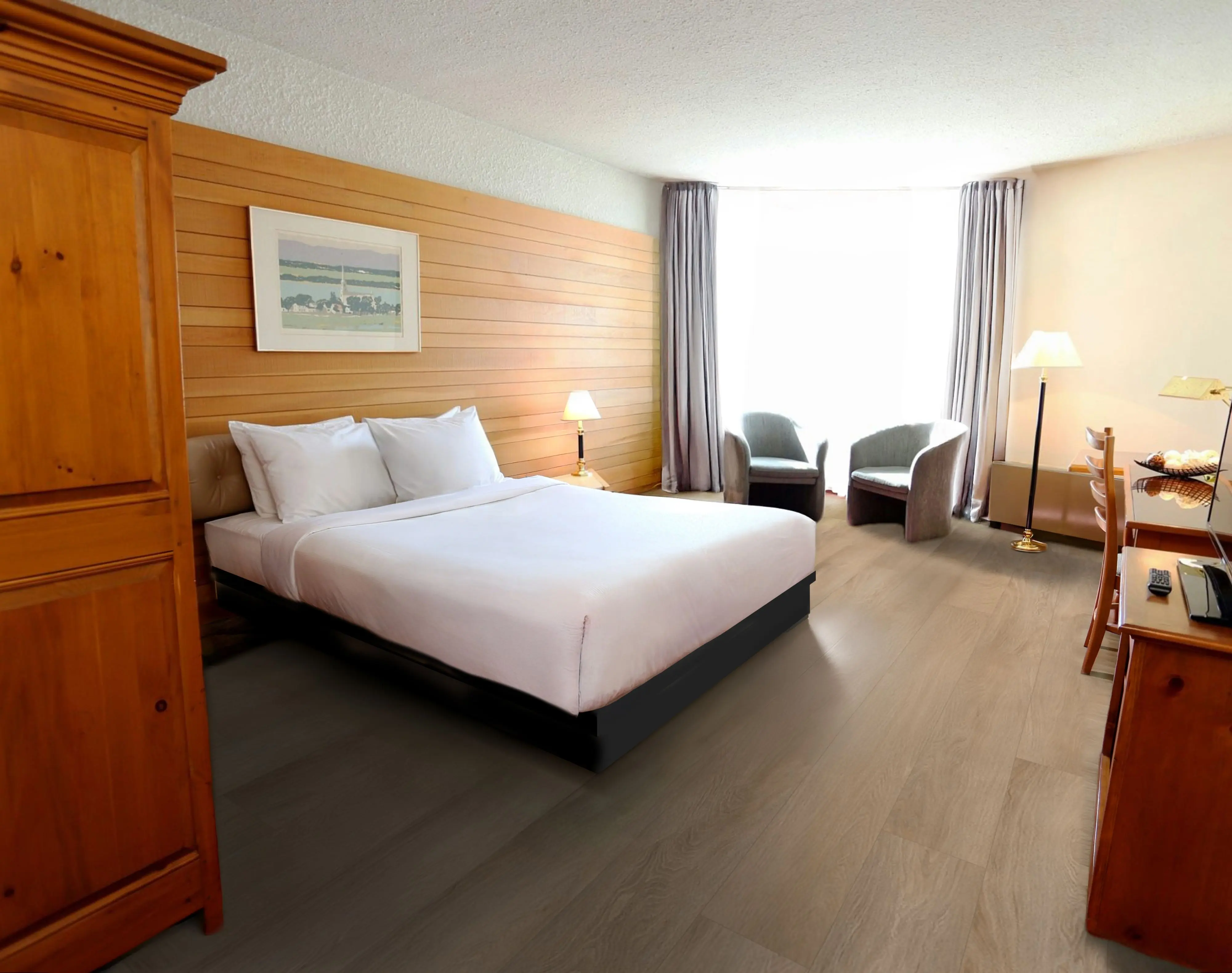 The Comfort room is optimally designed to allow travelers to relax after a busy day. Located on the upper levels of the hotel for less noise, it is spacious, bright and covered with a modern vinyl. The superior quality bedding will ensure a peaceful night's sleep, for a moment of fulfilment in Rimouski.