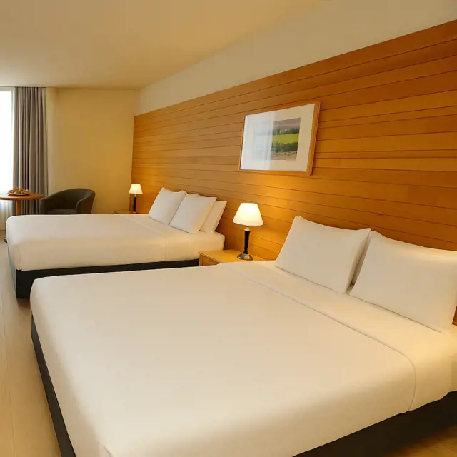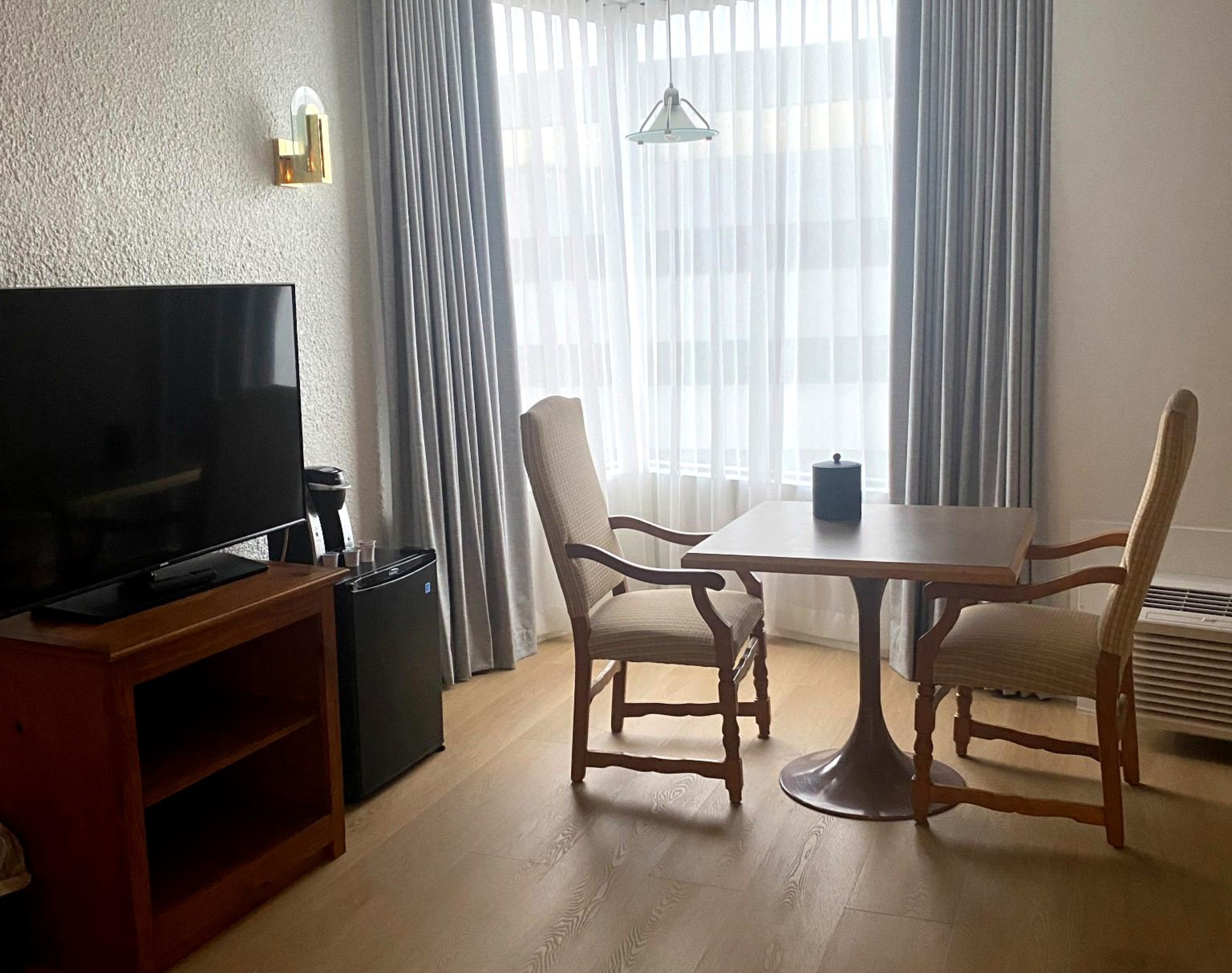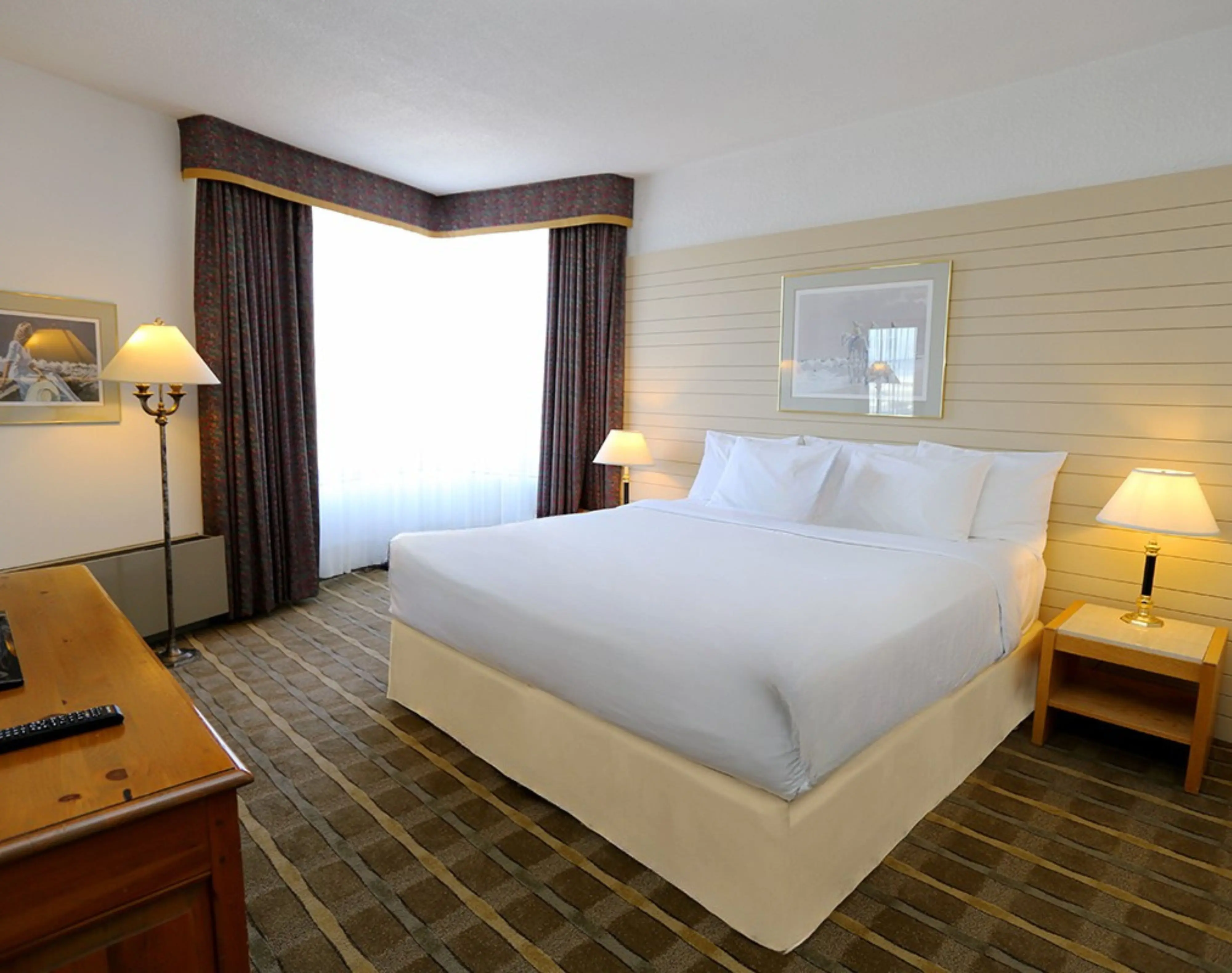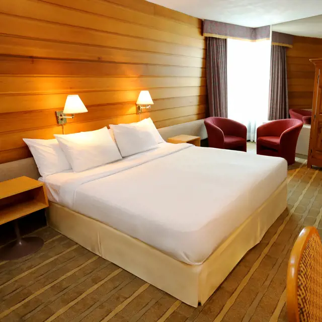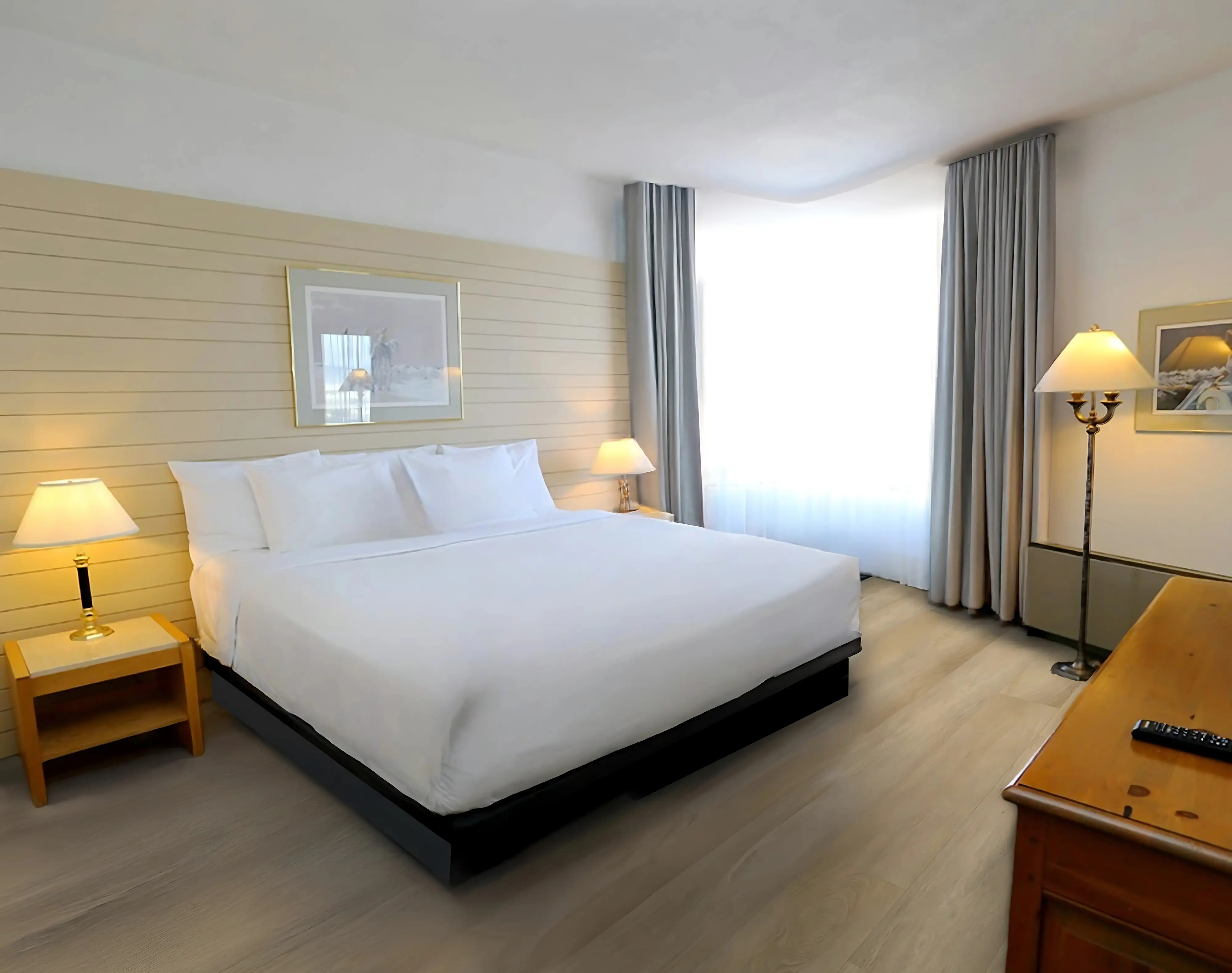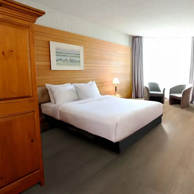 Our elegant suite is located on the top floor. It features a bedroom and living room separated by French doors, from which you have an exceptional view of the river. Available with carpet or vinyl flooring, you'll appreciate the extra room space exclusive to this room category, designed to offer you a high-quality experience.